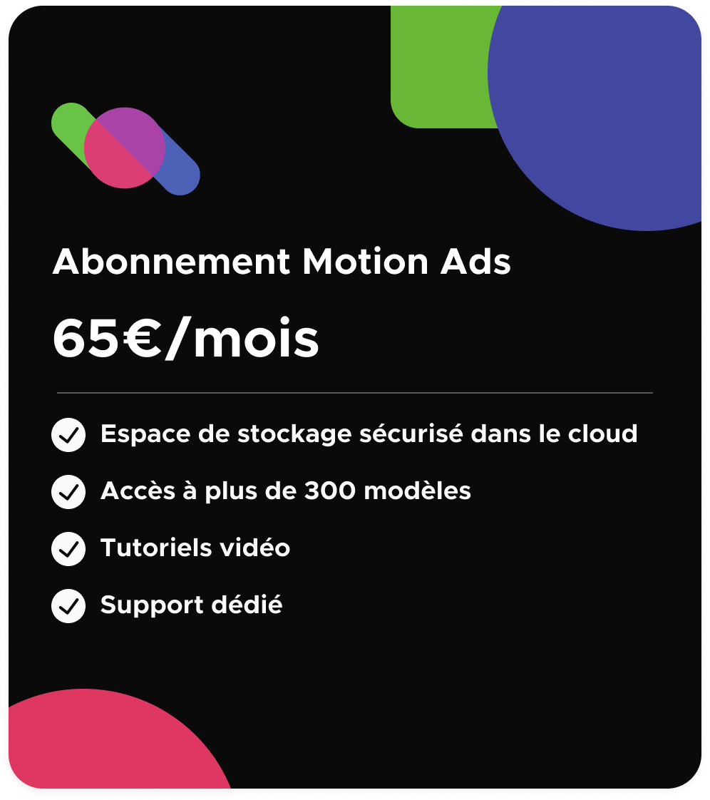 Chez Motionads, nous comprenons l'importance de contrôler vos coûts. C'est pourquoi nous avons opté pour une tarification claire et sans surprises. Avec un seul tarif mensuel, vous n'aurez jamais à vous soucier de coûts cachés.